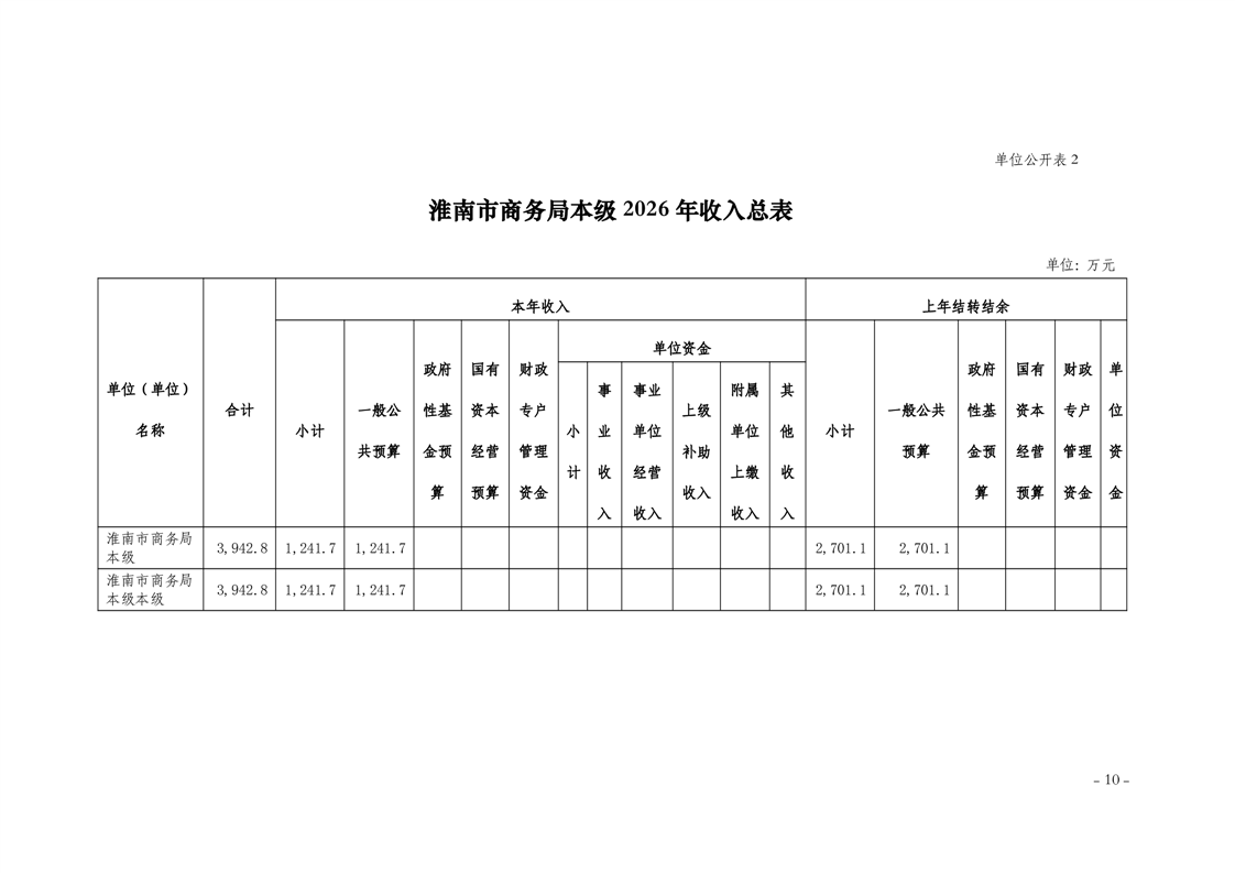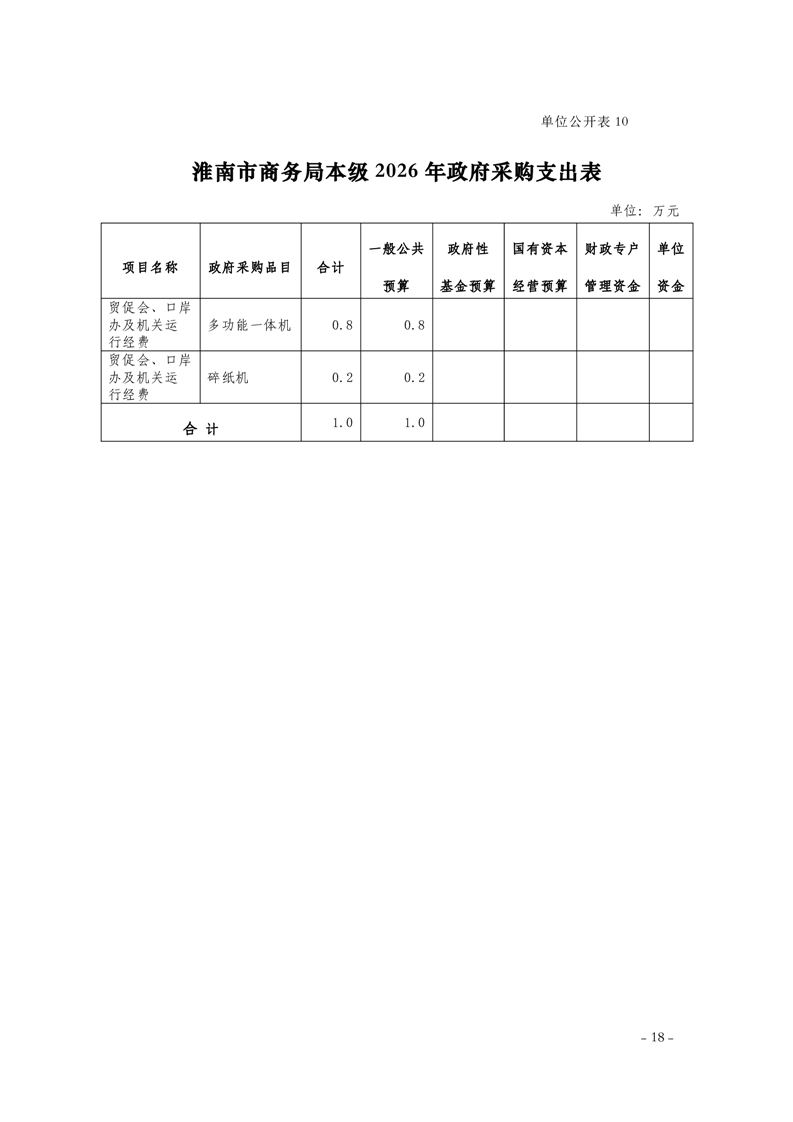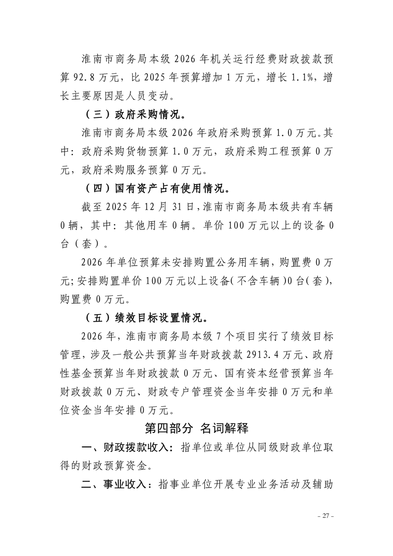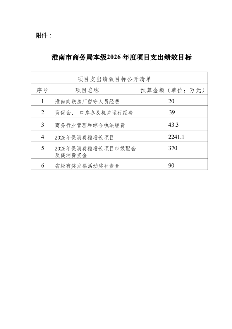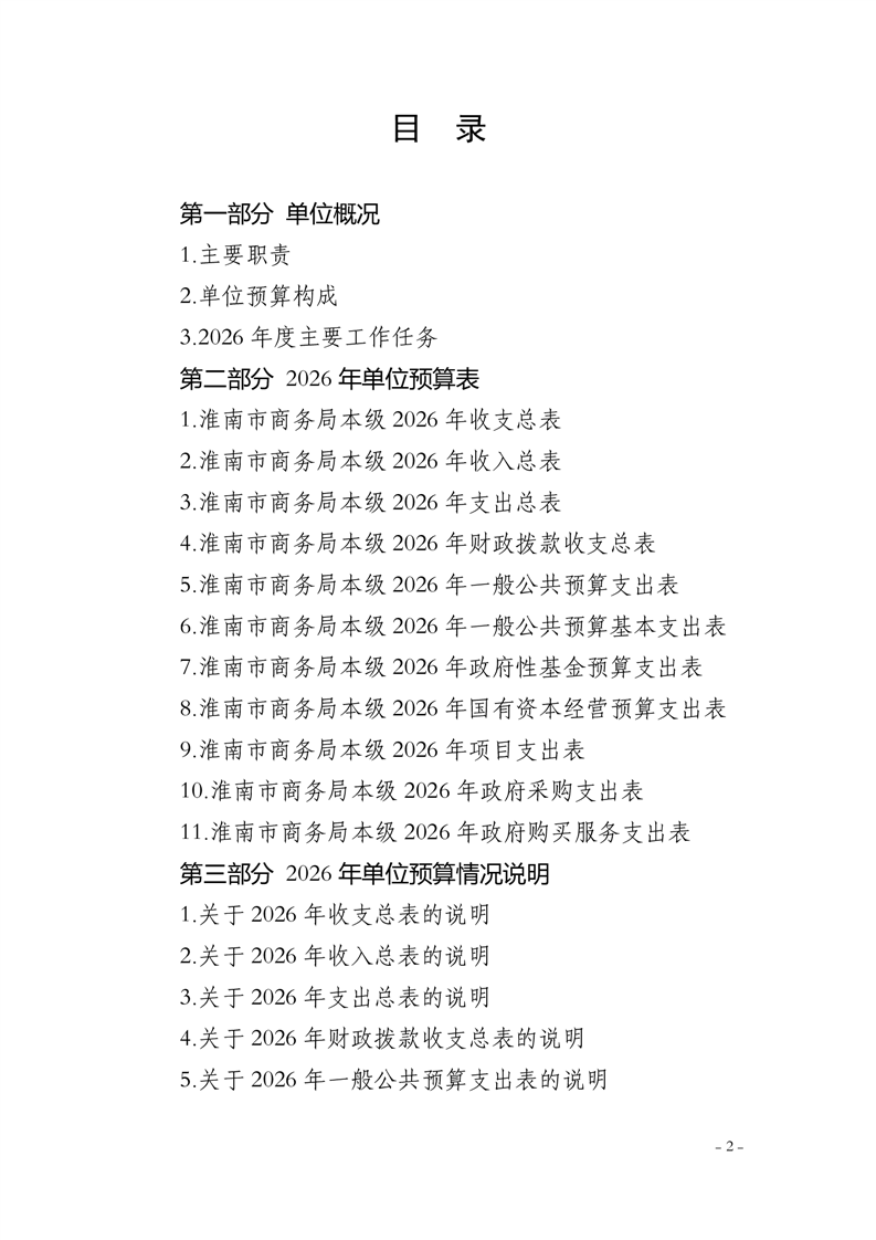 淮南市商务局本级2026年单位预算及附件