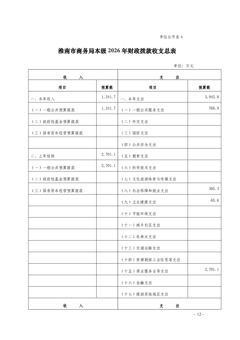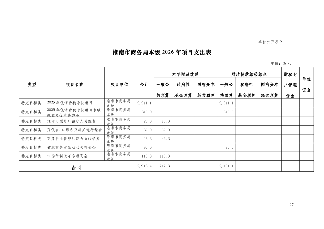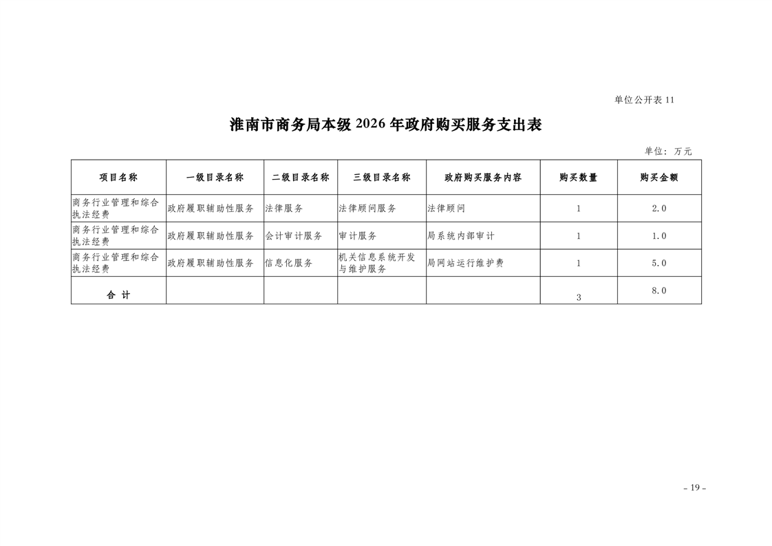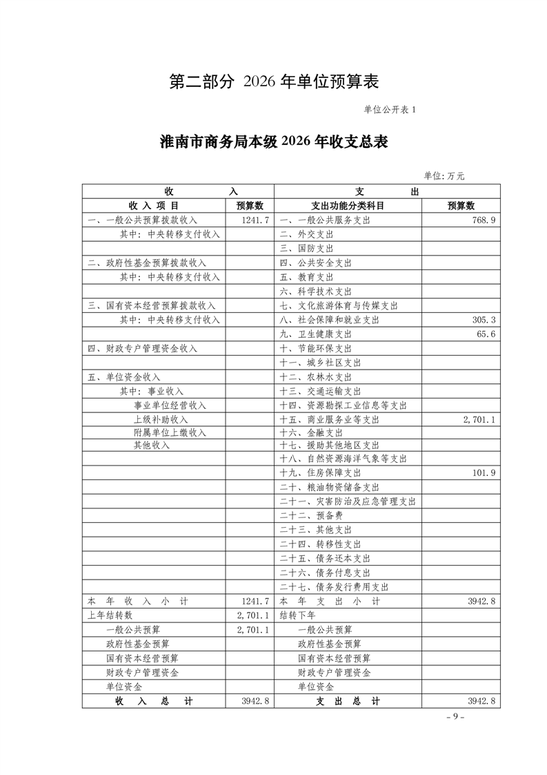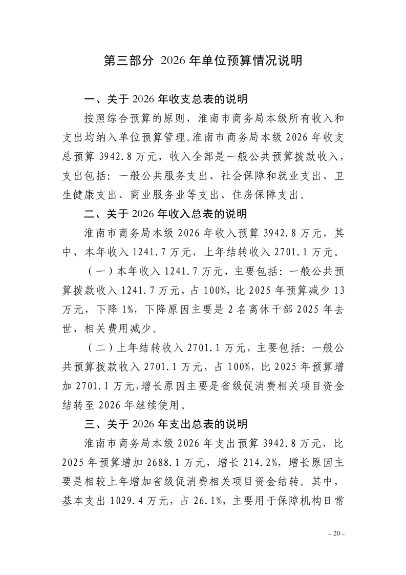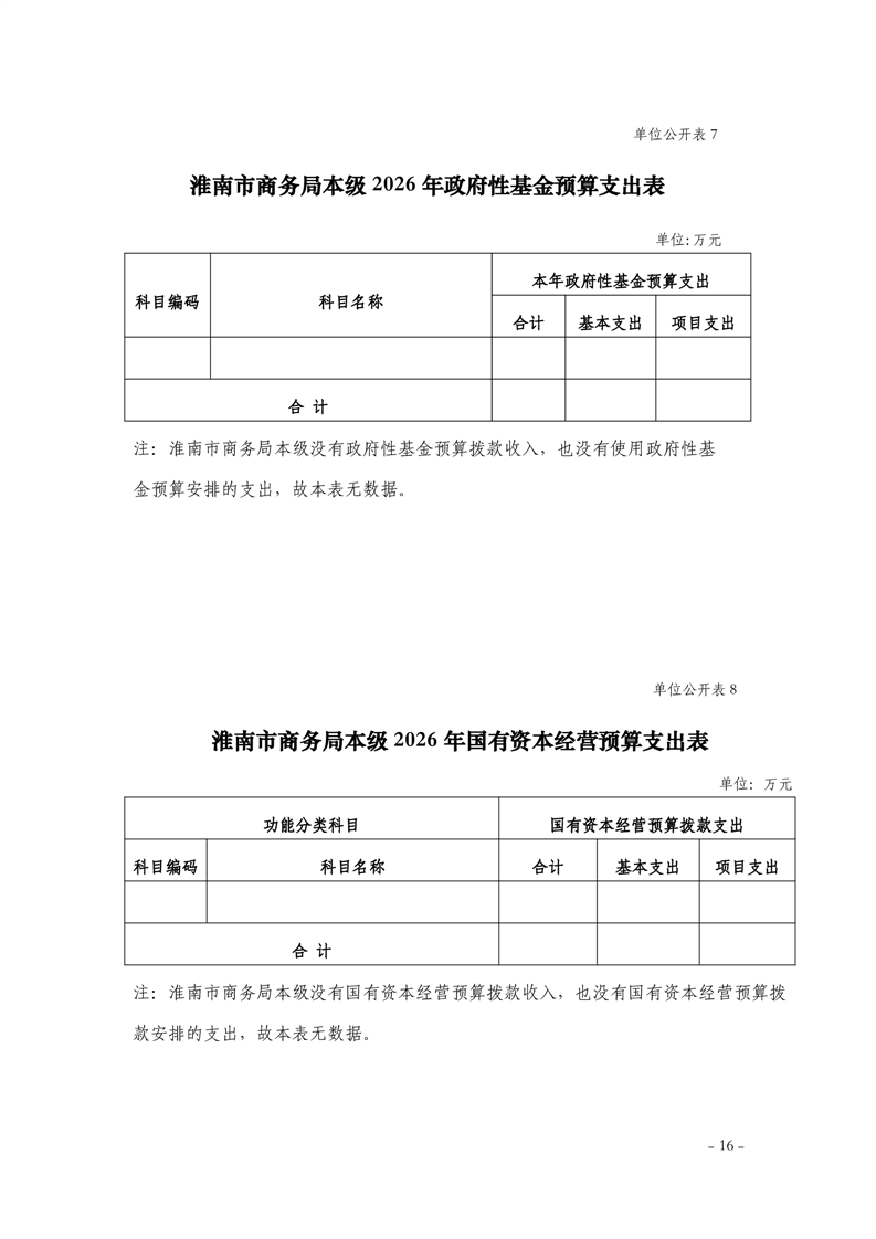 淮南市商务局本级2026年单位预算及附件