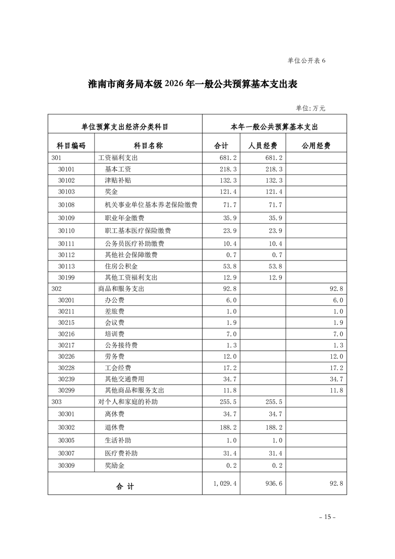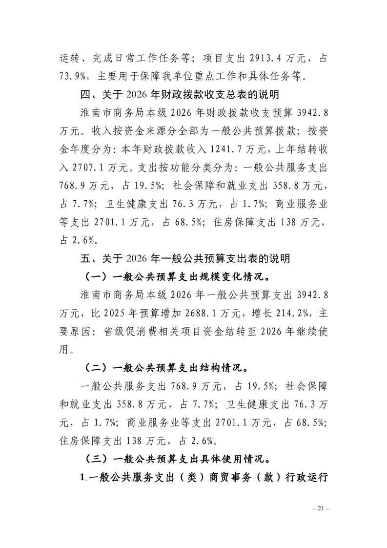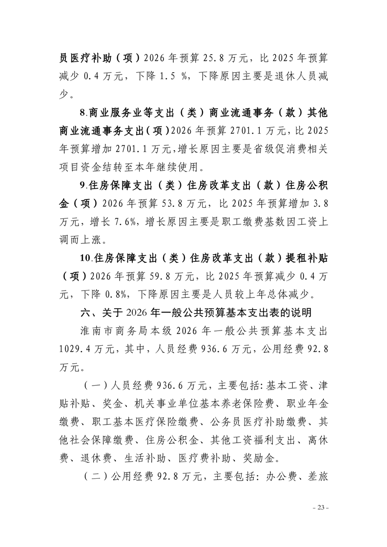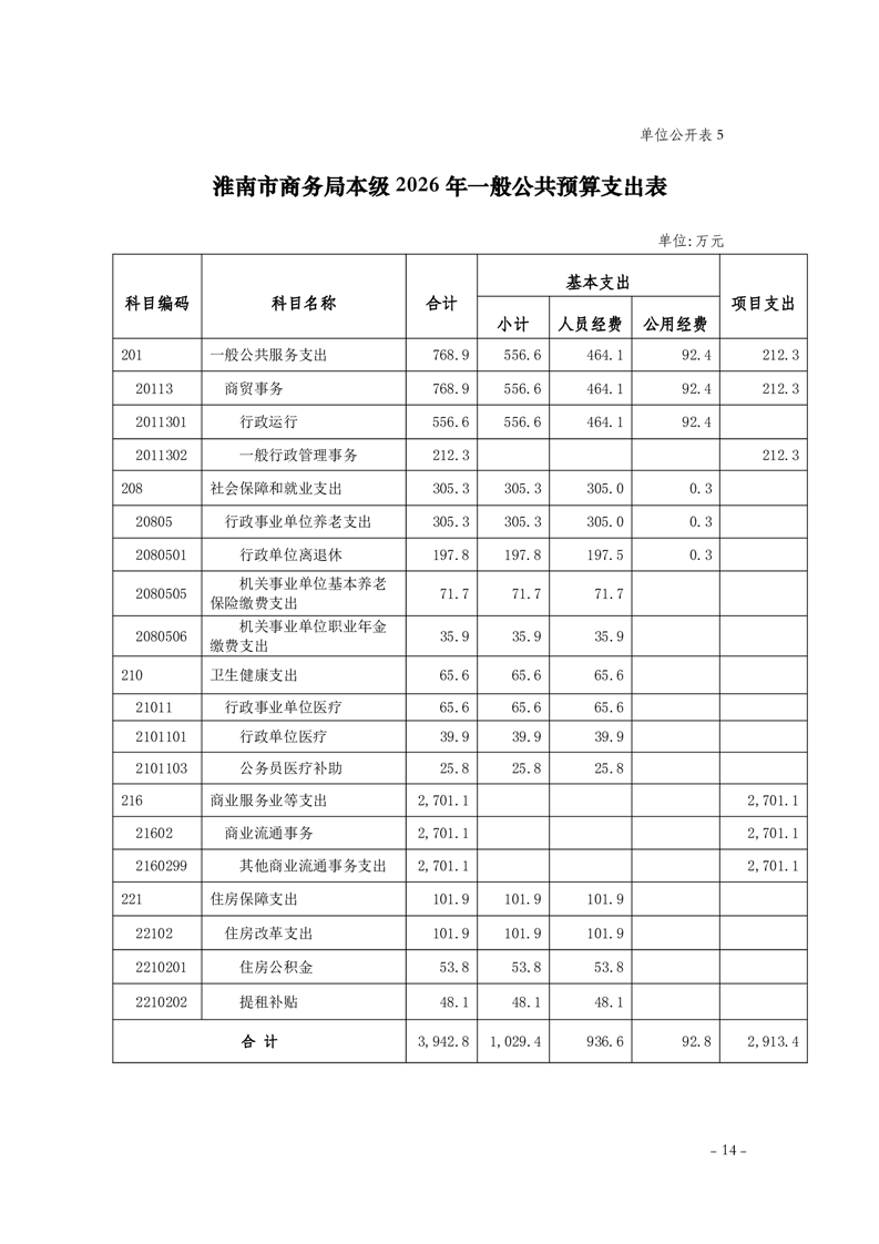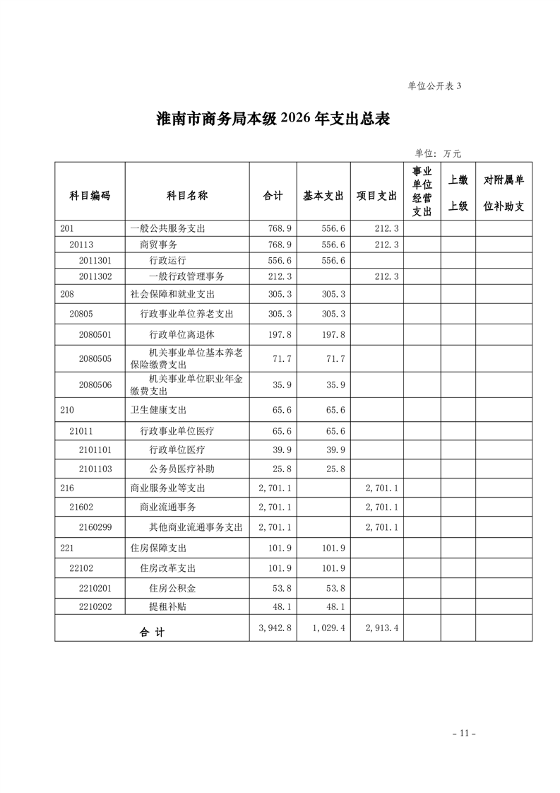 淮南市商务局本级2026年单位预算及附件