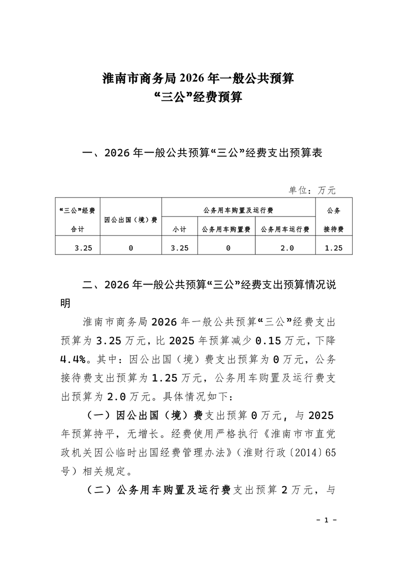 淮南市商务局2026年一般公共预算“三公”经费预算